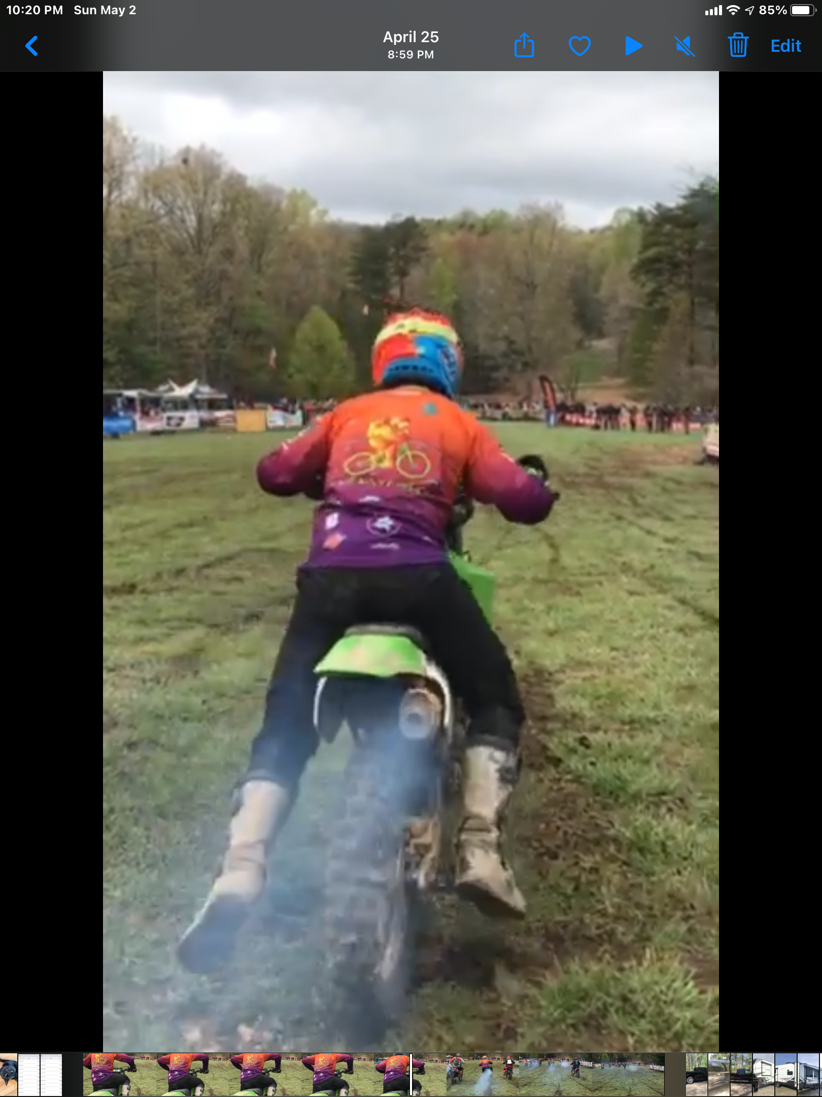 Martinsville sounded like my kind of course, it had tight, upsy-downsy trails with some WOT and flow. On Saturday before the race I shook her down on my neighbor’s farm where the boys had built a pretty challenging practice course. This was my first ride in the dry since going from a OEM 47 to a 49 tooth ring. During this ride I figured something out with that twisty thing. I discovered that if I pull it real far back and use that lever on the left hand side - the KDX morphs into a rocket-sled when pointed up a steep hill climb. I practiced this new technique a number of times and liked the sensation.